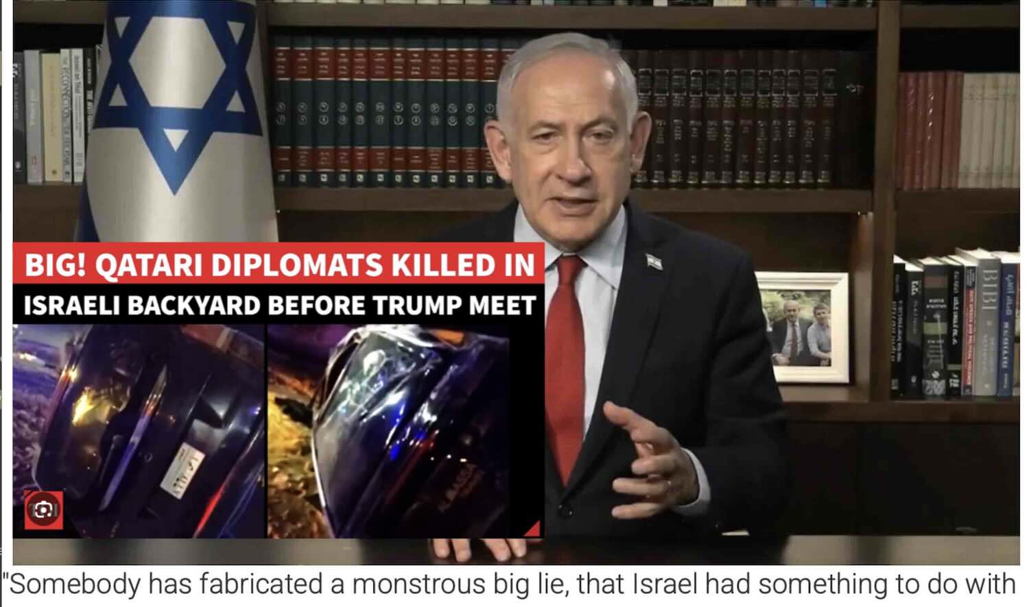 Israeli Prime Minister Benjamin Netanyahu overheatedly denied his country’s involvement in the October 11 “automobile accident” that killed the three antisemitic Hamas-loving Qatari diplomats who convinced US president Trump to abandon his Israeli ally. Looking harried and unshaven while speaking with a notable tremor, Netanyahu practically broke down crying while calling social media rumors blaming Israel for the deaths “digusting” and “false.”