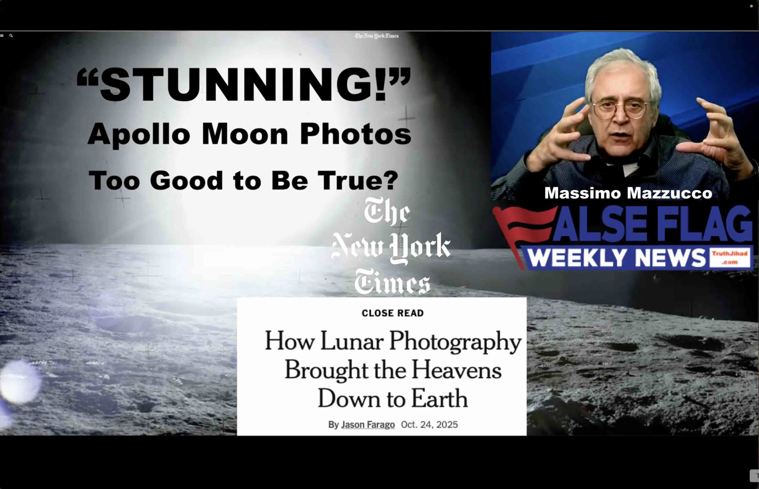 Uncannily indeed. Is Farago engaging in classic neocon doublespeak (surface layer for the ignorant rubes, esoteric layer for the cognoscenti)? Is he nudging and winking at the cognoscenti in a shared moment of dupers’ delight? Was this assignment handed out by the Deep State desk at the New York Times to blow smoke to cover for delays in the Artemis missions? Or is Mazzucco wrong in his claims that many moon landing photos are obviously fake, and that the most likely explanation of these and other anomalies is that the Apollo missions didn’t really put men on the moon circa 1969-1972?