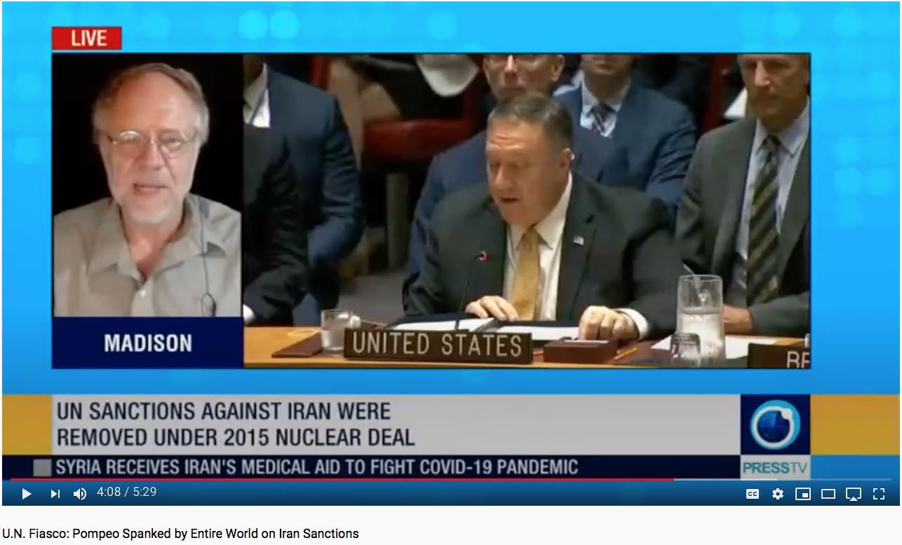 https://youtu.be/_qo49LRcQi8 Kevin Barrett interviewed by Press TV Mike Pompeo has been leading the charge in the Trump administration to try to trigger the snapback provisions in the Iran nuclear deal, the JCPOA. And this has led to a chorus of derision and mockery from all over the world, not just from sources one would expect, like Foreign Minister Zarif from…